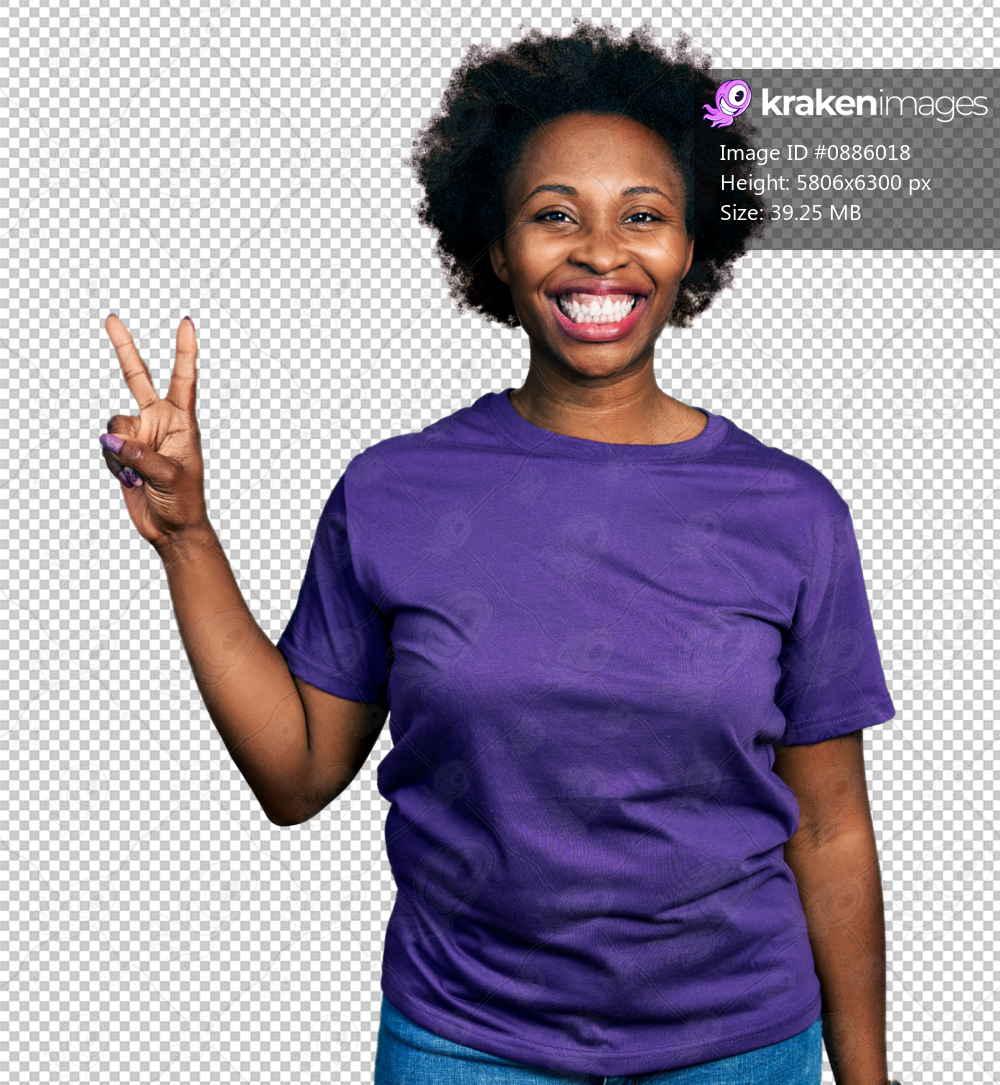 African american woman with afro hair wearing casual purple t shirt showing and pointing up with fingers number two while smiling confident and happy.