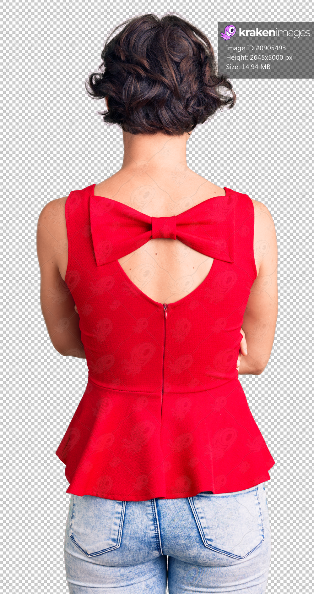 Beautiful young woman with short hair wearing casual style with sleeveless shirt standing backwards looking away with crossed arms