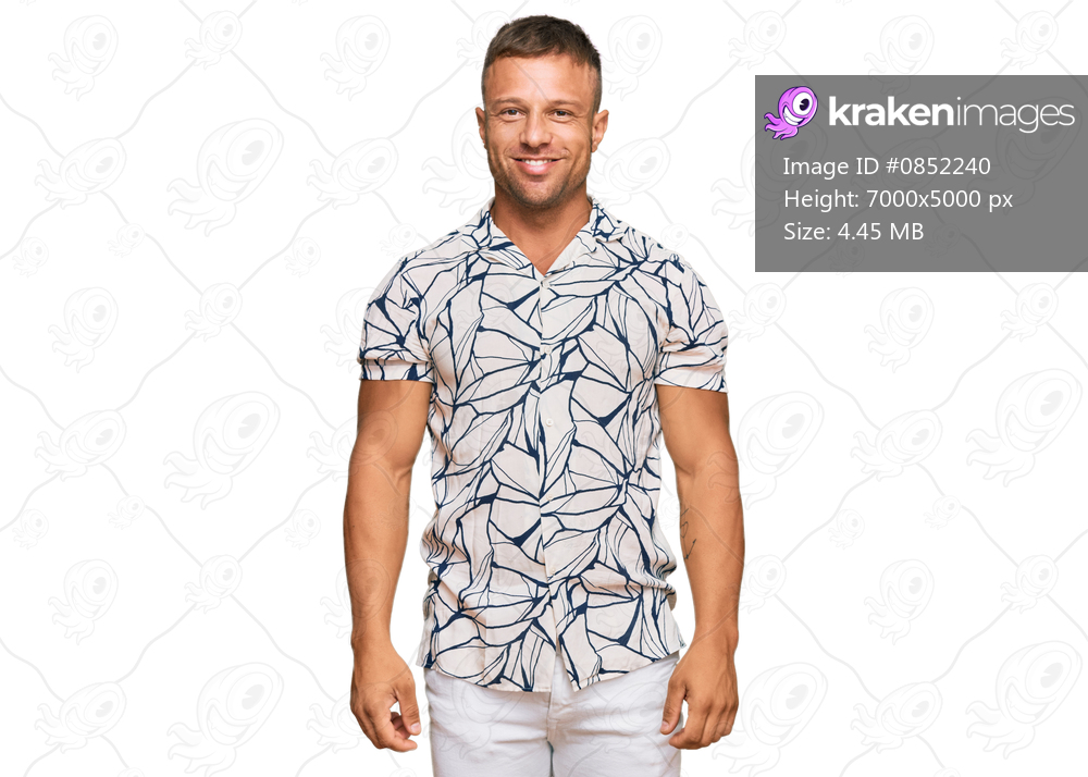 Handsome muscle man wearing casual clothes looking positive and happy standing and smiling with a confident smile showing teeth