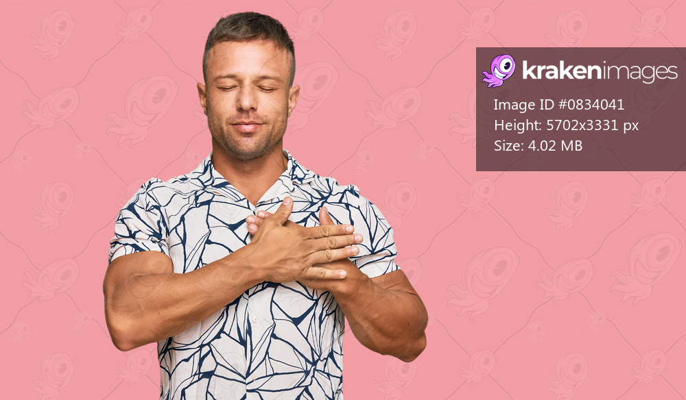 Handsome muscle man wearing casual clothes smiling with hands on chest with closed eyes and grateful gesture on face. health concept.