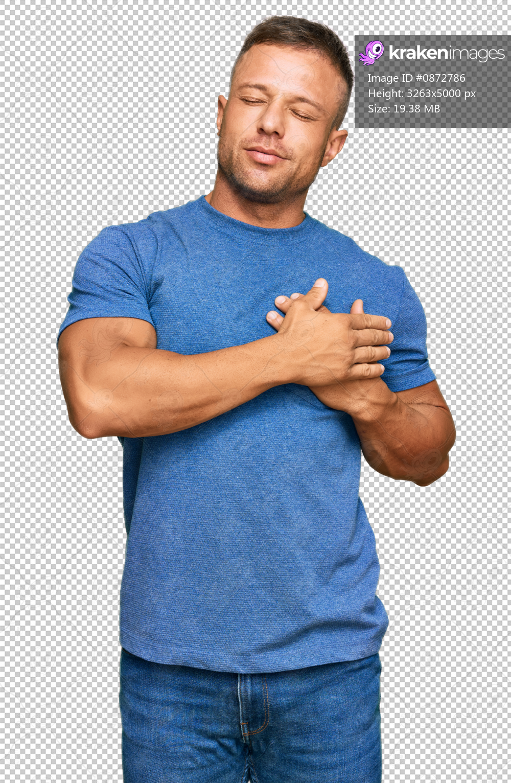 Handsome muscle man wearing casual clothes smiling with hands on chest with closed eyes and grateful gesture on face. health concept.