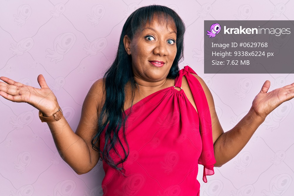 Middle age african american woman wearing casual clothes clueless and confused with open arms, no idea and doubtful face.
