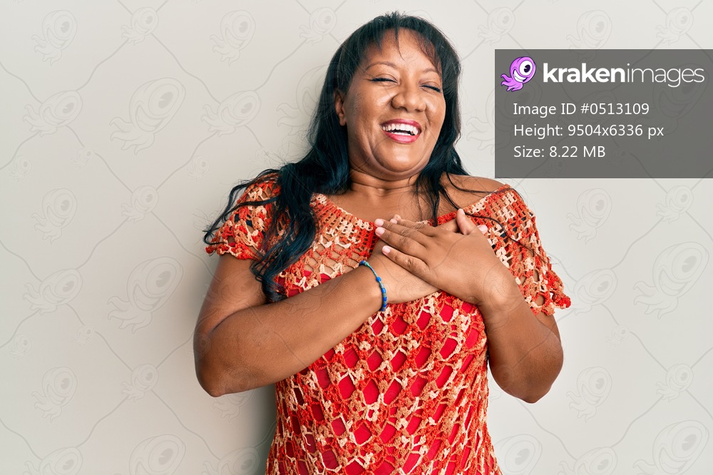 Middle age african american woman wearing casual clothes smiling with hands on chest, eyes closed with grateful gesture on face. health concept.