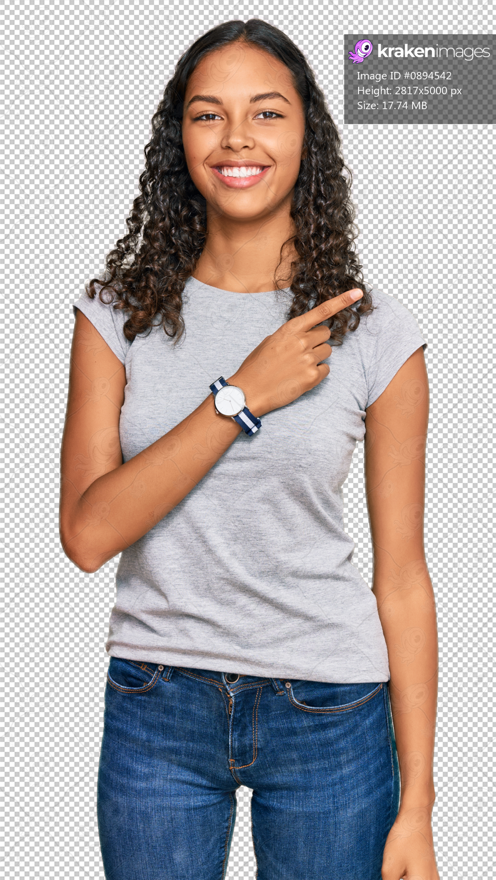 Young african american girl wearing casual clothes cheerful with a smile on face pointing with hand and finger up to the side with happy and natural expression - Kraken Images