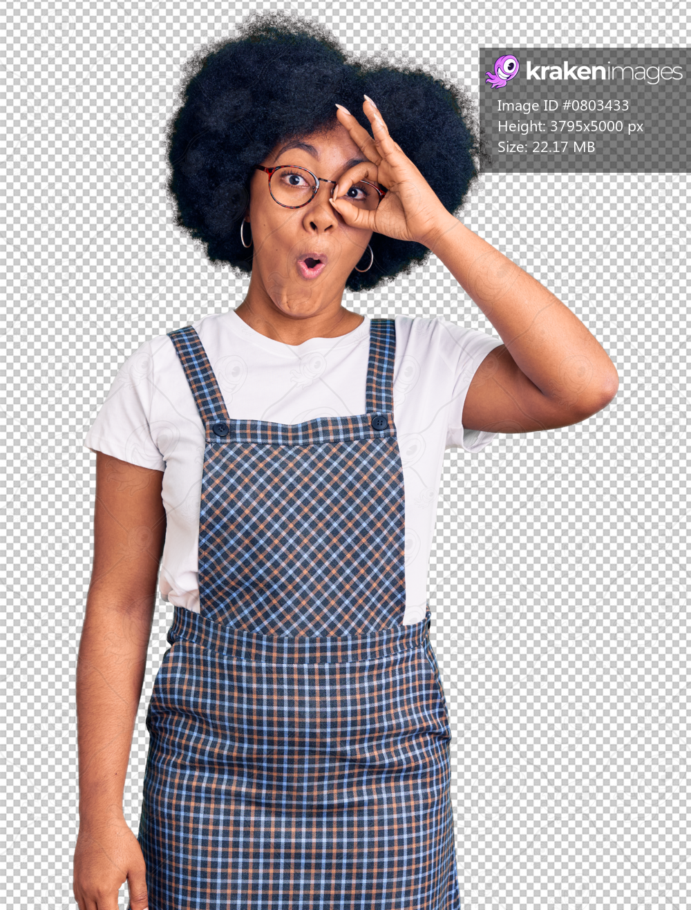 Young african american girl wearing casual clothes doing ok gesture shocked with surprised face, eye looking through fingers. unbelieving expression.