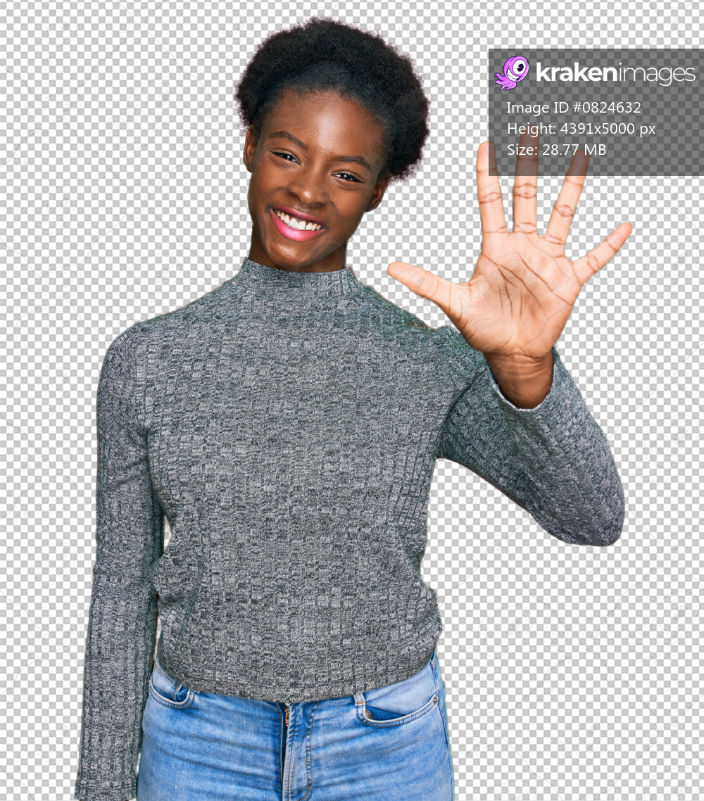 Young african american girl wearing casual clothes showing and pointing up with fingers number five while smiling confident and happy.