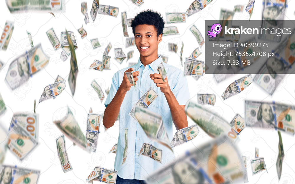 Young african american man wearing casual clothes pointing fingers to camera with happy and funny face. good energy and vibes.