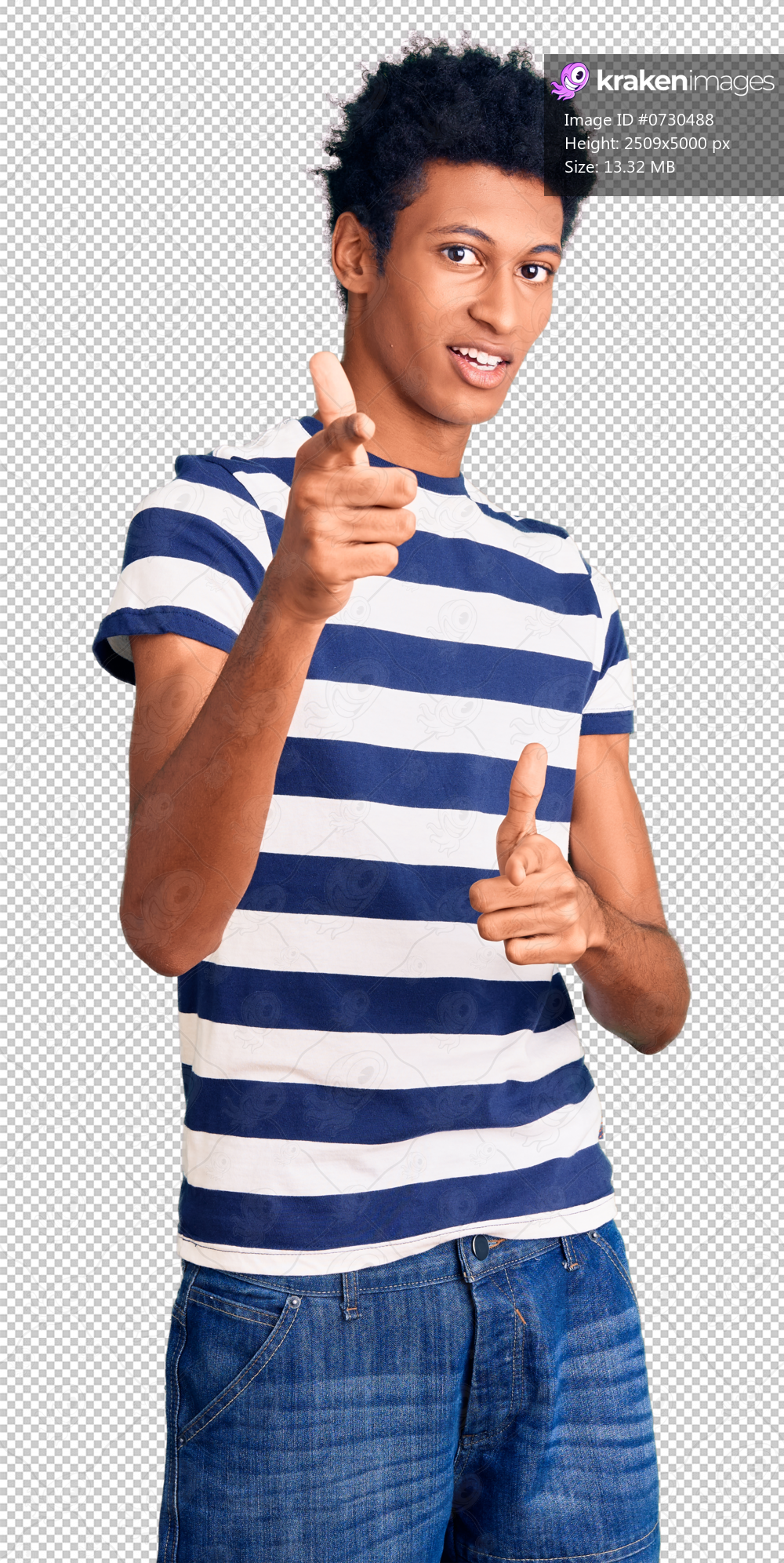 Young african american man wearing casual clothes pointing fingers to camera with happy and funny face. good energy and vibes.