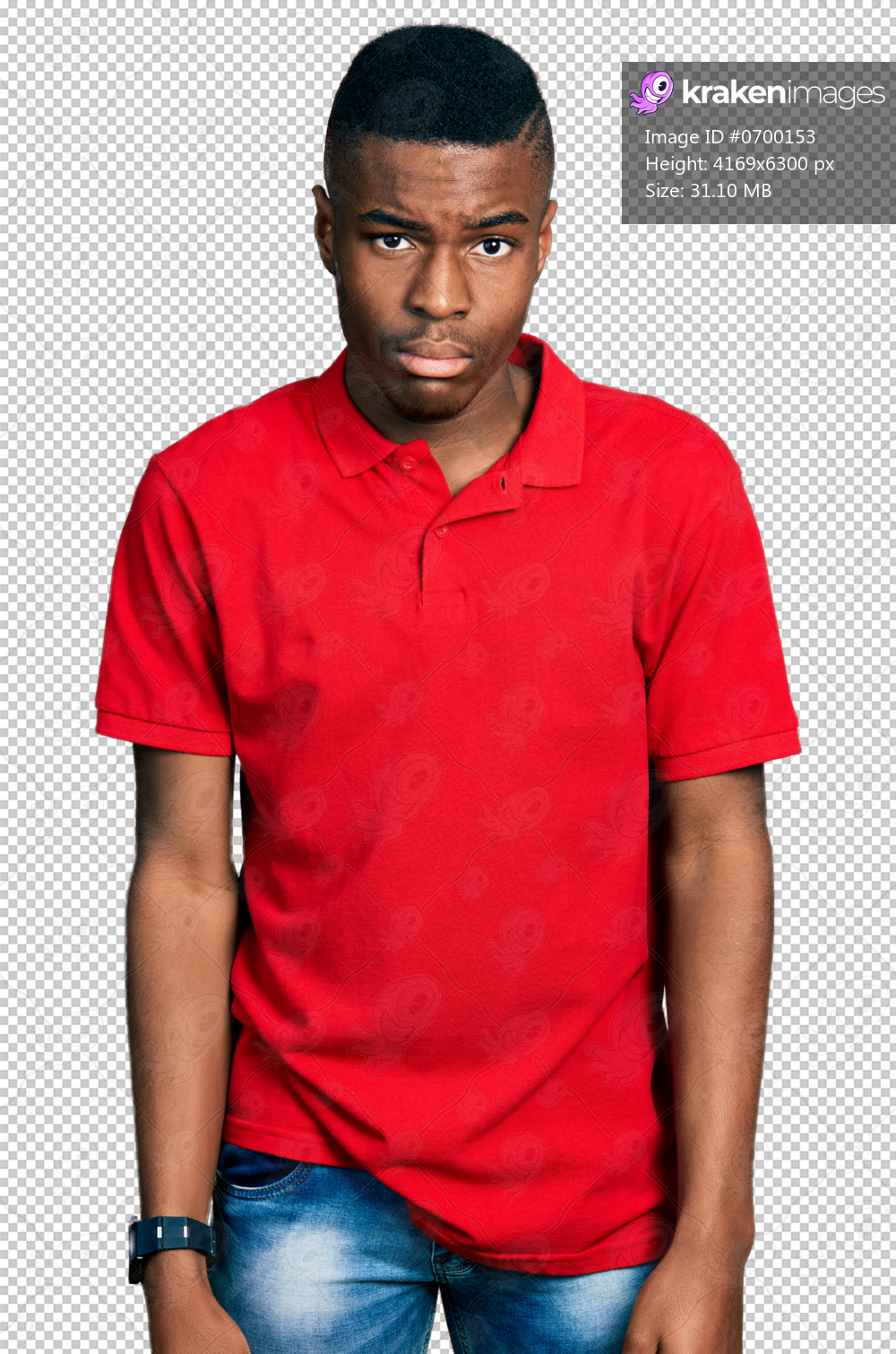 Young african american man wearing casual red t shirt depressed and worry for distress, crying angry and afraid. sad expression.
