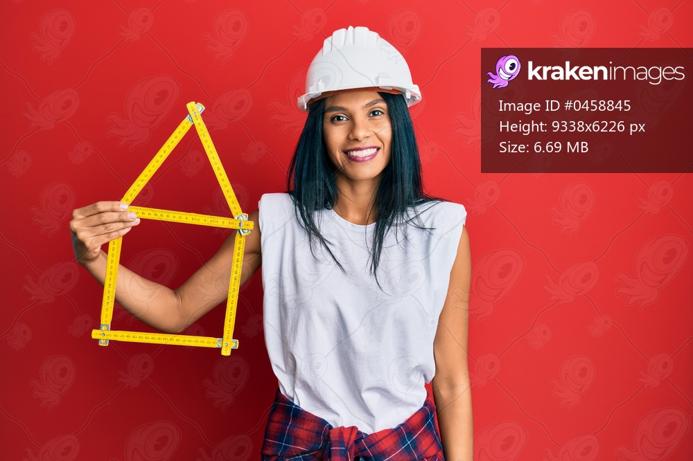 Young african american woman wearing architect hardhat holding build project looking positive and happy standing and smiling with a confident smile showing teeth - Kraken Images