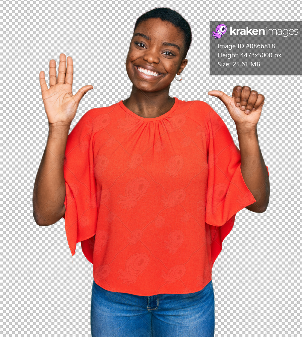Young african american woman wearing casual clothes showing and pointing up with fingers number six while smiling confident and happy.