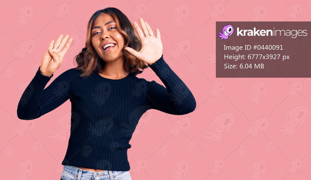 Young beautiful mixed race woman wearing casual clothes showing and pointing up with fingers number nine while smiling confident and happy.