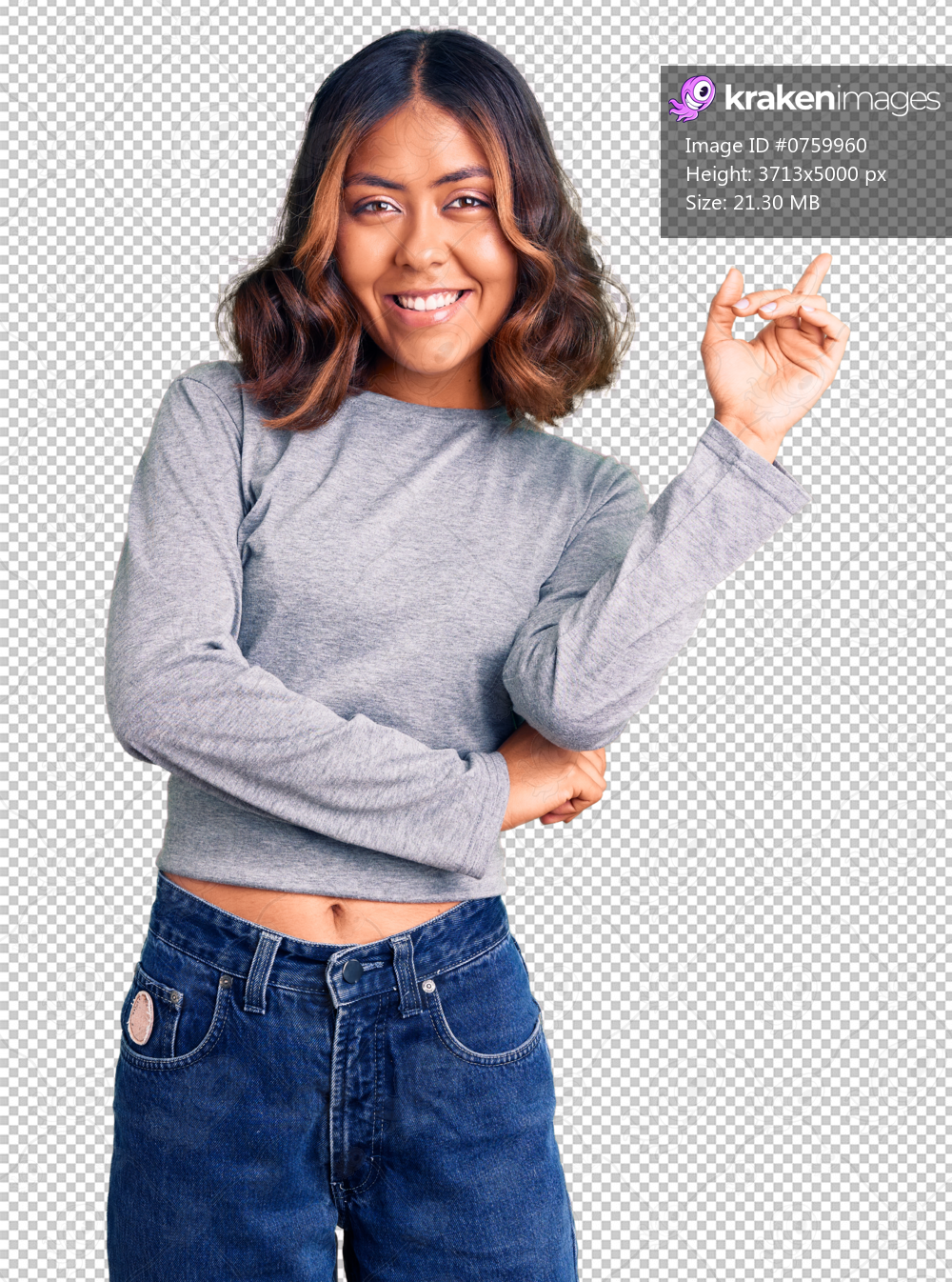 Young beautiful mixed race woman wearing casual clothes smiling happy pointing with hand and finger to the side