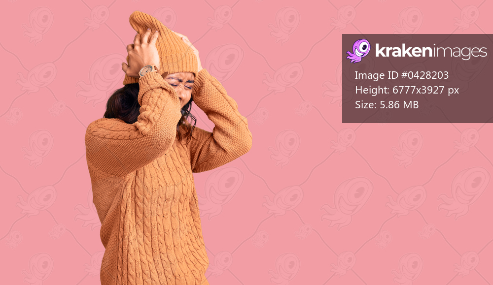Young beautiful mixed race woman wearing wool sweater and winter hat suffering from headache desperate and stressed because pain and migraine. hands on head. - Kraken Images
