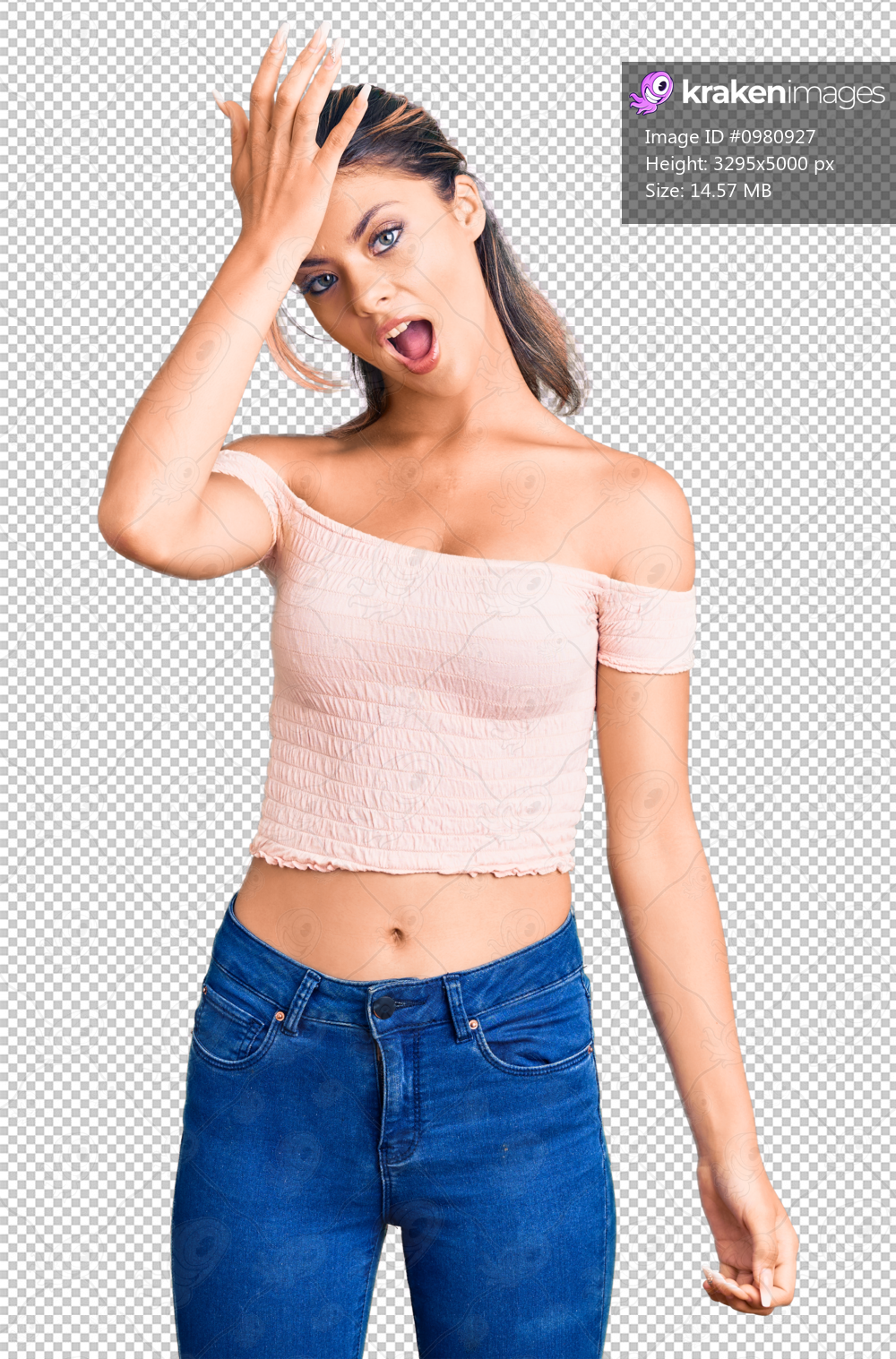 Young beautiful woman wearing casual clothes surprised with hand on head for mistake, remember error. forgot, bad memory concept.