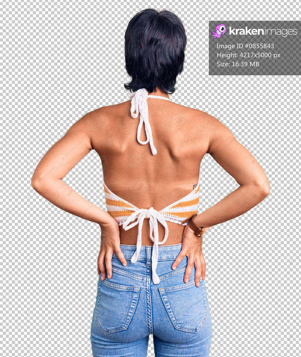 Young brunette woman with short hair wearing casual clothes standing backwards looking away with arms on body