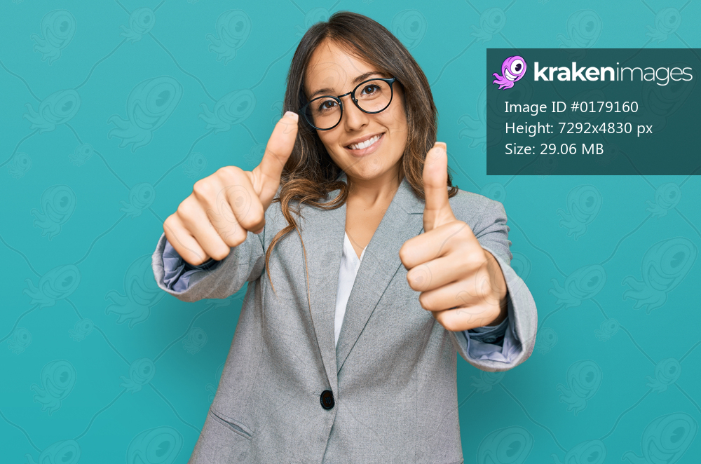 Young brunette woman wearing business clothes approving doing positive gesture with hand, thumbs up smiling and happy for success. winner gesture.