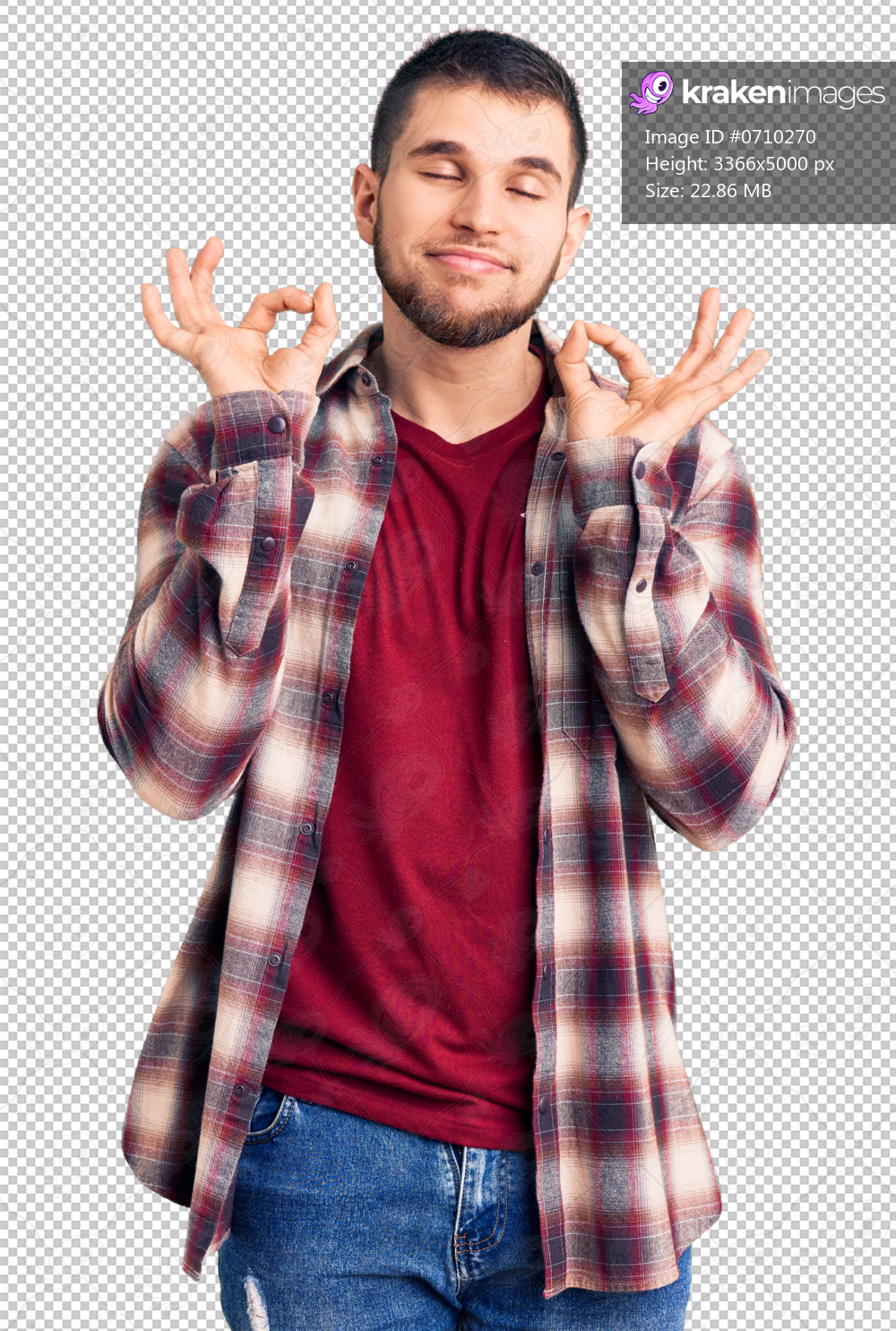Young handsome man wearing casual shirt relaxed and smiling with eyes closed doing meditation gesture with fingers. yoga concept.