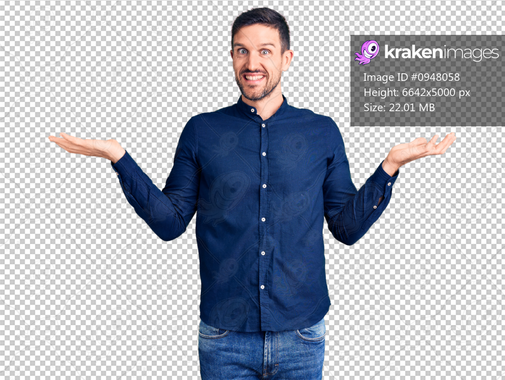 Young handsome man wearing casual shirt smiling showing both hands open palms, presenting and advertising comparison and balance