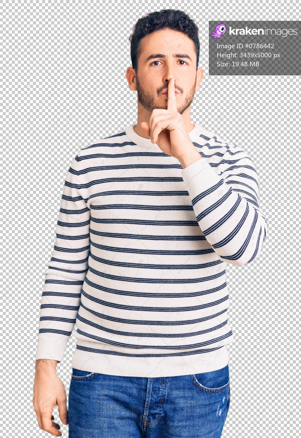 Young hispanic man wearing casual clothes asking to be quiet with finger on lips. silence and secret concept.