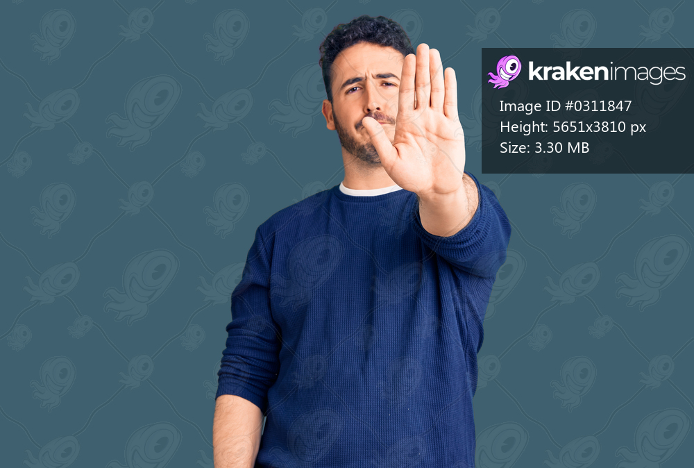 Young hispanic man wearing casual clothes doing stop sing with palm of the hand. warning expression with negative and serious gesture on the face.