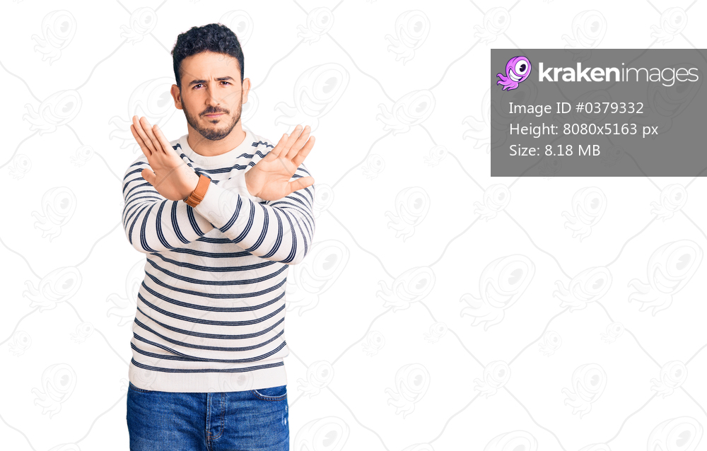Young hispanic man wearing casual clothes rejection expression crossing arms doing negative sign, angry face