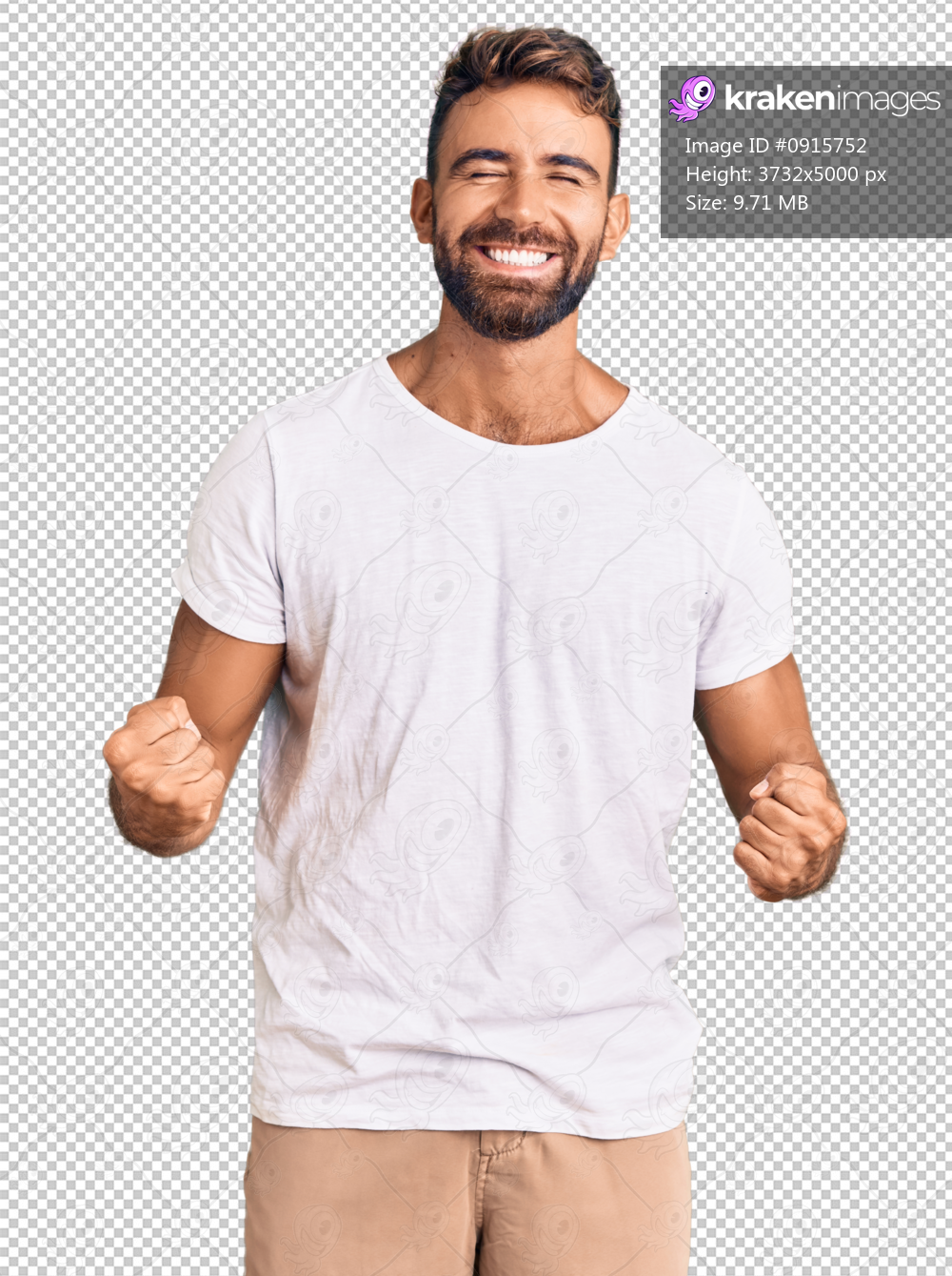 Young hispanic man wearing casual white tshirt very happy and excited doing winner gesture with arms raised, smiling and screaming for success. celebration concept. - Kraken Images