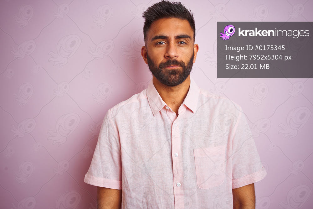 Young indian man wearing casual shirt standing over isolated pink background Relaxed with serious expression on face. Simple and natural looking at the camera. - Kraken Images